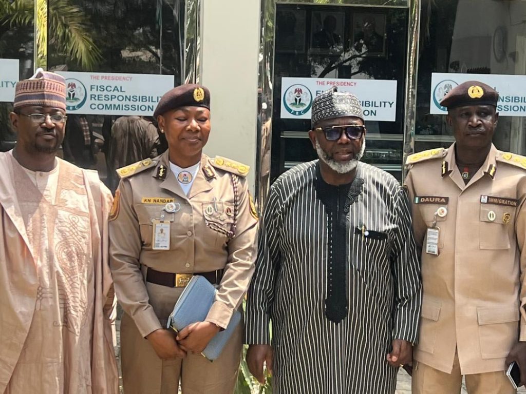 The Comptroller-General of Nigeria Immigration Service, KN Nandap, pcc, mmis, fsmn, fspsp, earlier today paid a courtesy visit to the Chairman of the Fiscal Responsibility Commission (FRC), Chief Victor Chinemerem Muruako Esq, at the Commission’s Headquarters in Abuja to deepen institutional collaboration and strengthen reporting compliance.